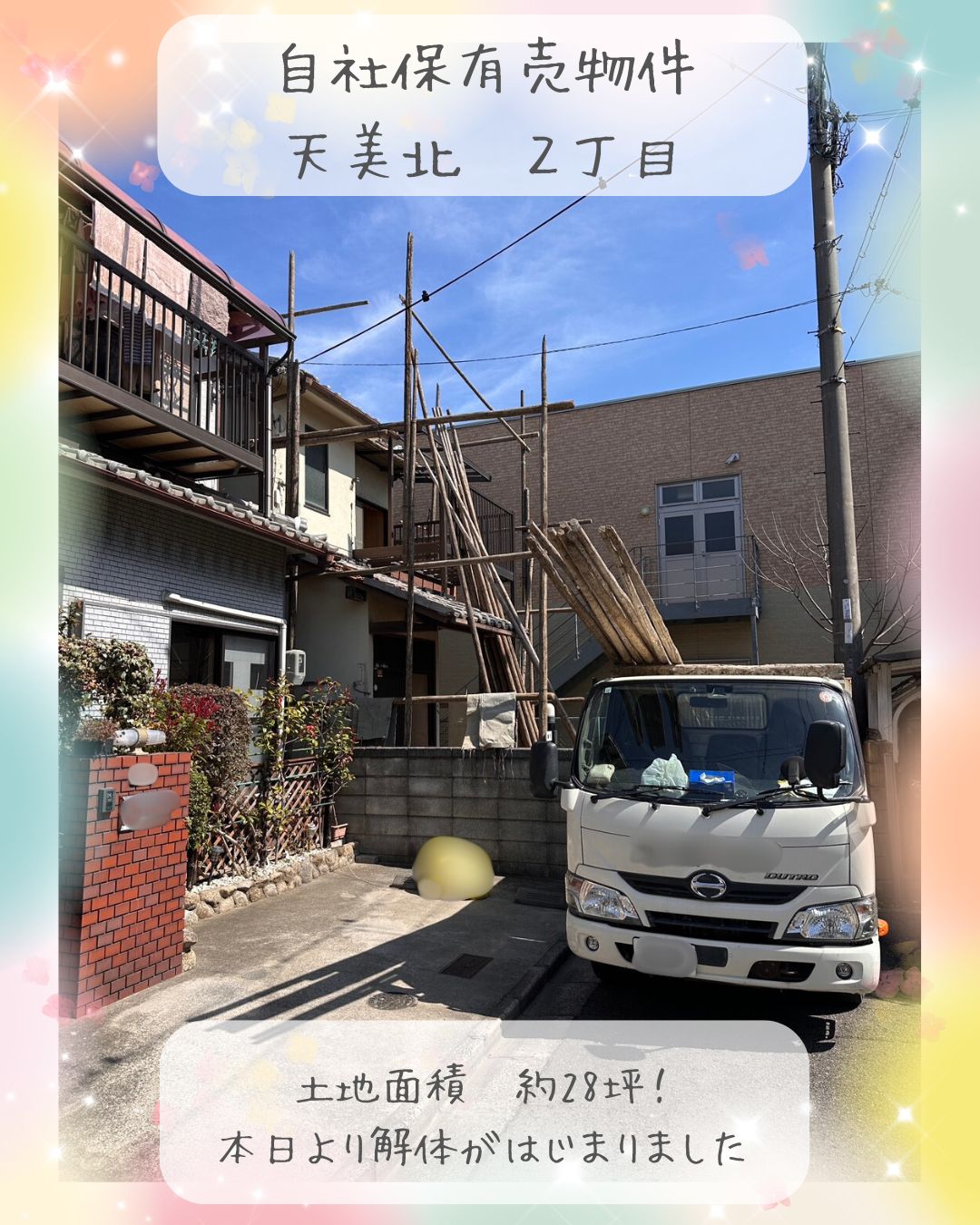 天美北2丁目で、いよいよ解体工事が始まりました!